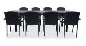 Dotaz na produkt Na splátky ještě dnesPěkná zahradní jídelní sestava z kovu a umělého ratanu pro 8 osob. Sestavu tvoří a 8x