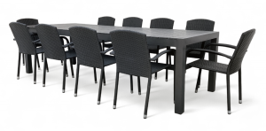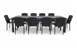 Dotaz na produkt Na splátky ještě dnesZahradní jídelní sestava z kovu a umělého ratanu pro 10 osob. Sestavu tvoří a 10x
