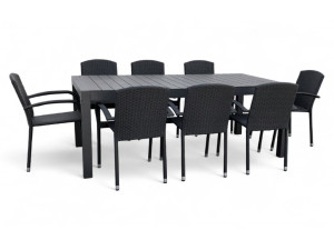 Dotaz na produkt Na splátky ještě dnesZahradní jídelní sestava z kovu a umělého ratanu pro 8 osob. Sestavu tvoří a 8x
