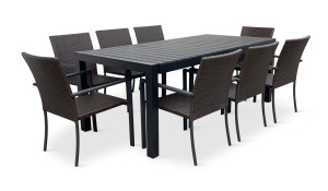 Dotaz na produkt Na splátky ještě dnesKvalitní zahradní jídelní sestava z kovu a umělého ratanu pro 8 osob. Sestavu tvoří a 8x