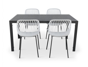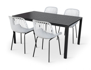 Dotaz na produkt Na splátky ještě dnesModerní jídelní sestava na zahradu z téměř bezúdržbových materiálů - kovu, polypropylenu a umělého dřeva artwood pro 4 osoby. Sestavu tvoří a 4x