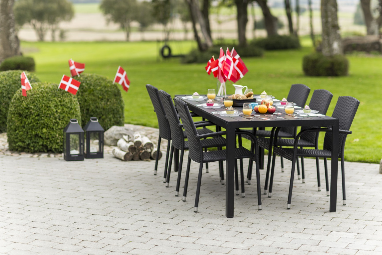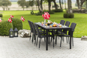 Stůl Viking XL a židle Roma tvoří dohromady krásnou a kvalitní zahradní jídelní sestavu.