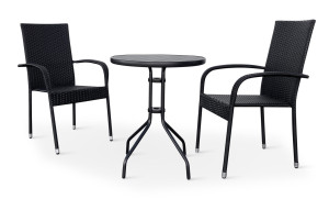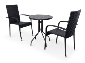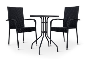 Společně s balkonovým stolkem dodáme venkovní židle s ocelovou konstrukcí vypletenou umělým ratanem, které se hodí prakticky kamkoliv. Umělý ratan představuje velmi odolný materiál, který dobře snáší jakékoliv povětrnostní podmínky. Na slunci se nevyšisuje a po dlouhou dobu si uchovává svůj vzhled. Pro delší životnost byla ocelová konstrukce židle ošetřena proti rzi. Stohovatelné, téměř bezúdržbové židle s vyztuženým sedákem, který unese těžší váhy i po delší dobu.