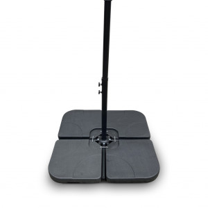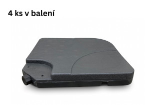 Dotaz na produktPraktická sada 4 závaží na stojan pro slunečníky vyrobená z plastu, která je určená pro slunečníky s křížovou základnou. Závaží můžete naplnit pískem nebo vodou. Zajistíte tím slunečník proti převrácení. Zajištění závaží pomocí 4 kovových úchytů. Odolná vůči povětrnostním vlivům.