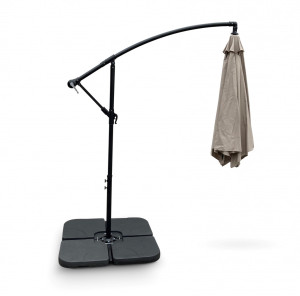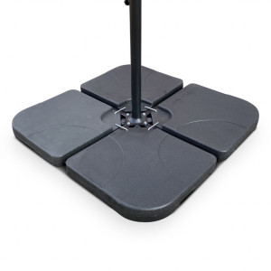Slunečník je dodáván včetně 4 ks závaží z plastu pro zatížení základny. Závaží jednoduše naplníte vodou nebo pískem a zajistíte pomocí 4 kovových úchytů.