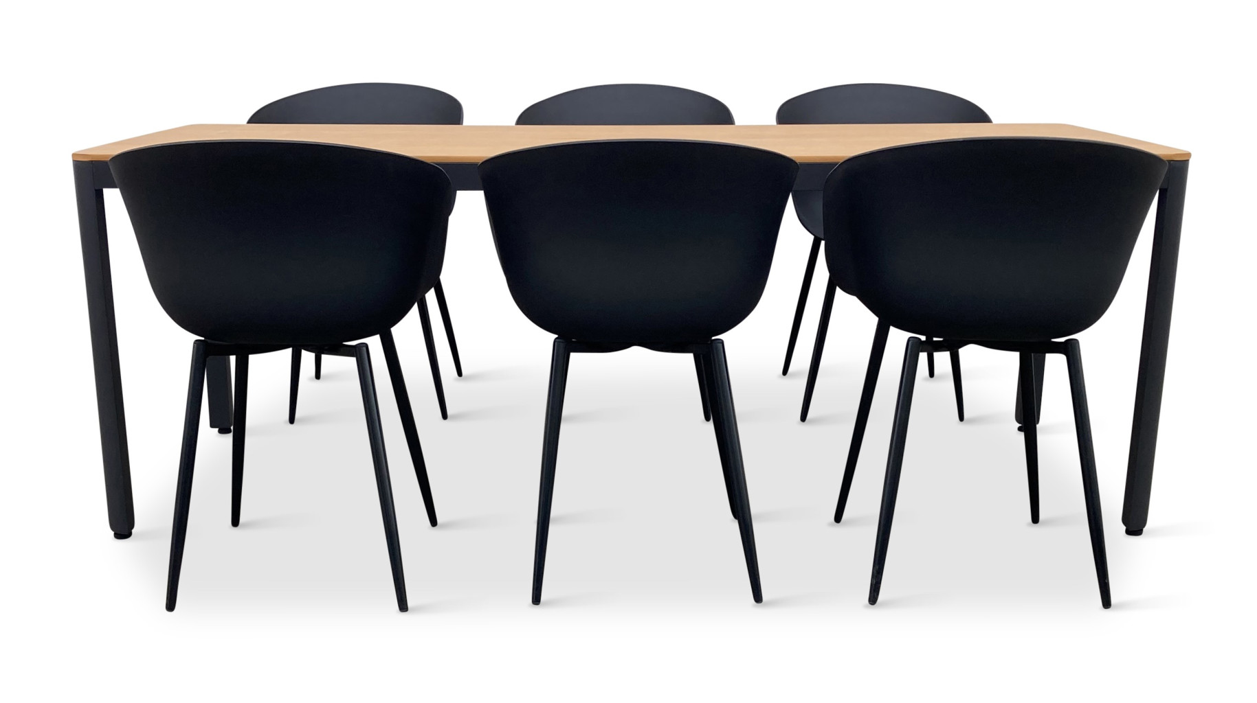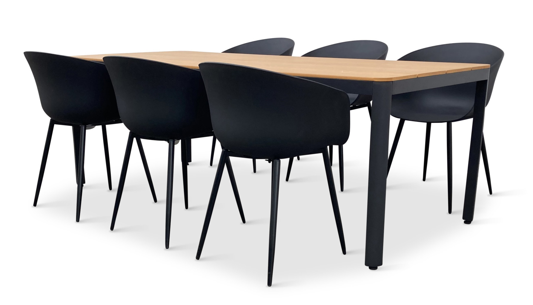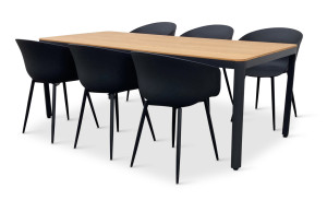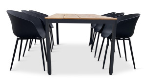 Jídelní stůl doplňují moderní zahradní židle RIKKE s područkou v černé barvě vhodné pro použití venku na zahradě. Sedák a opěrku tvoří plastová designová skořepina z polypropylenu na 4 pevných nožkách z oceli. Židle odolává povětrnostním vlivům a najde tak své využití v interiéru i exteriéru. Použité lehké a moderní materiály nevyžadují téměř žádnou údržbu. Lehkou židli RIKKE navíc snadno přenesete.