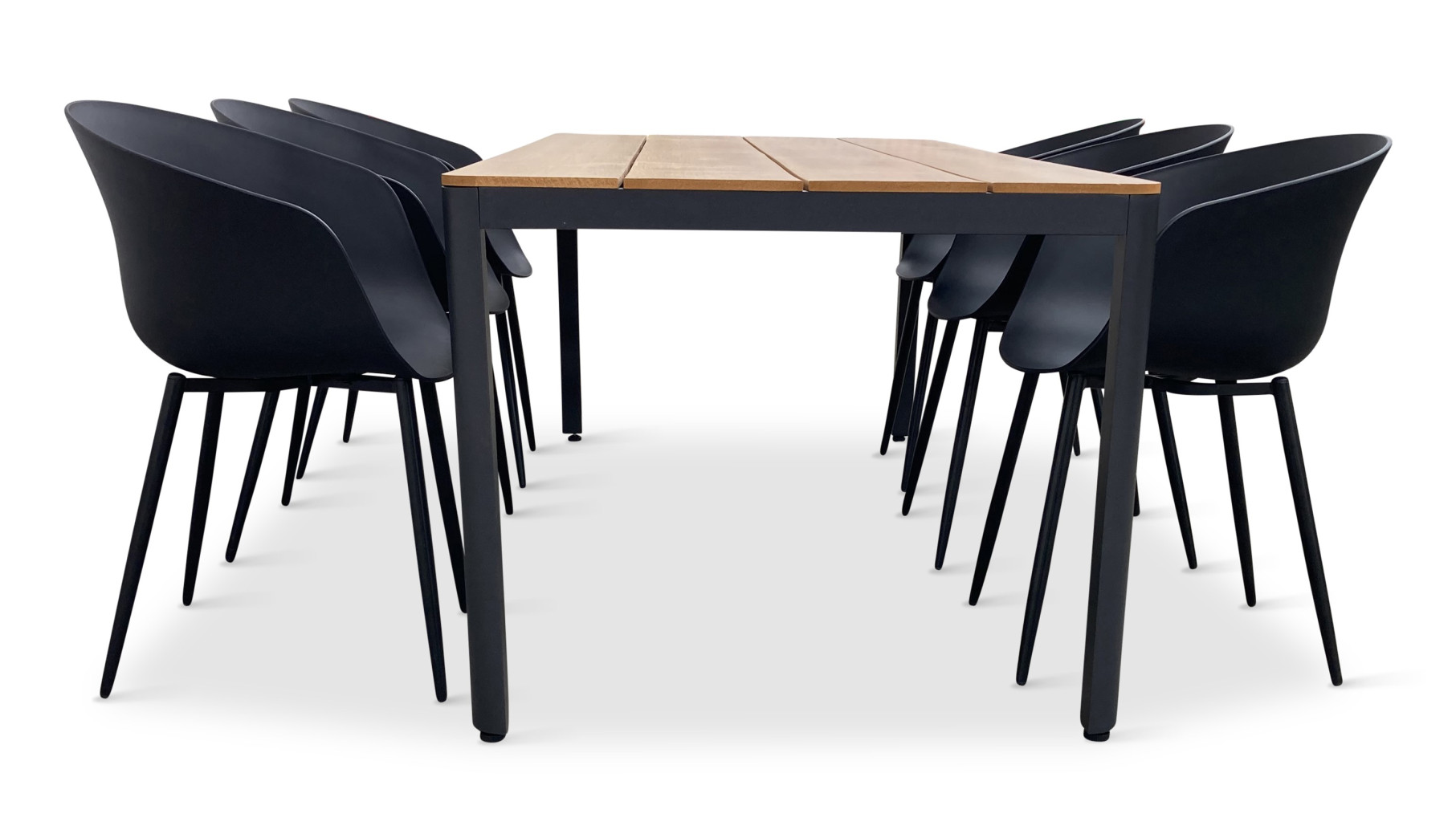 Stůl MILANO a židle RIKKE tvoří dohromady moderní zahradní jídelní sestavu, ideální pro zákazníky, kteří kromě funkčnosti kladou důraz i na vzhled a design nábytku.