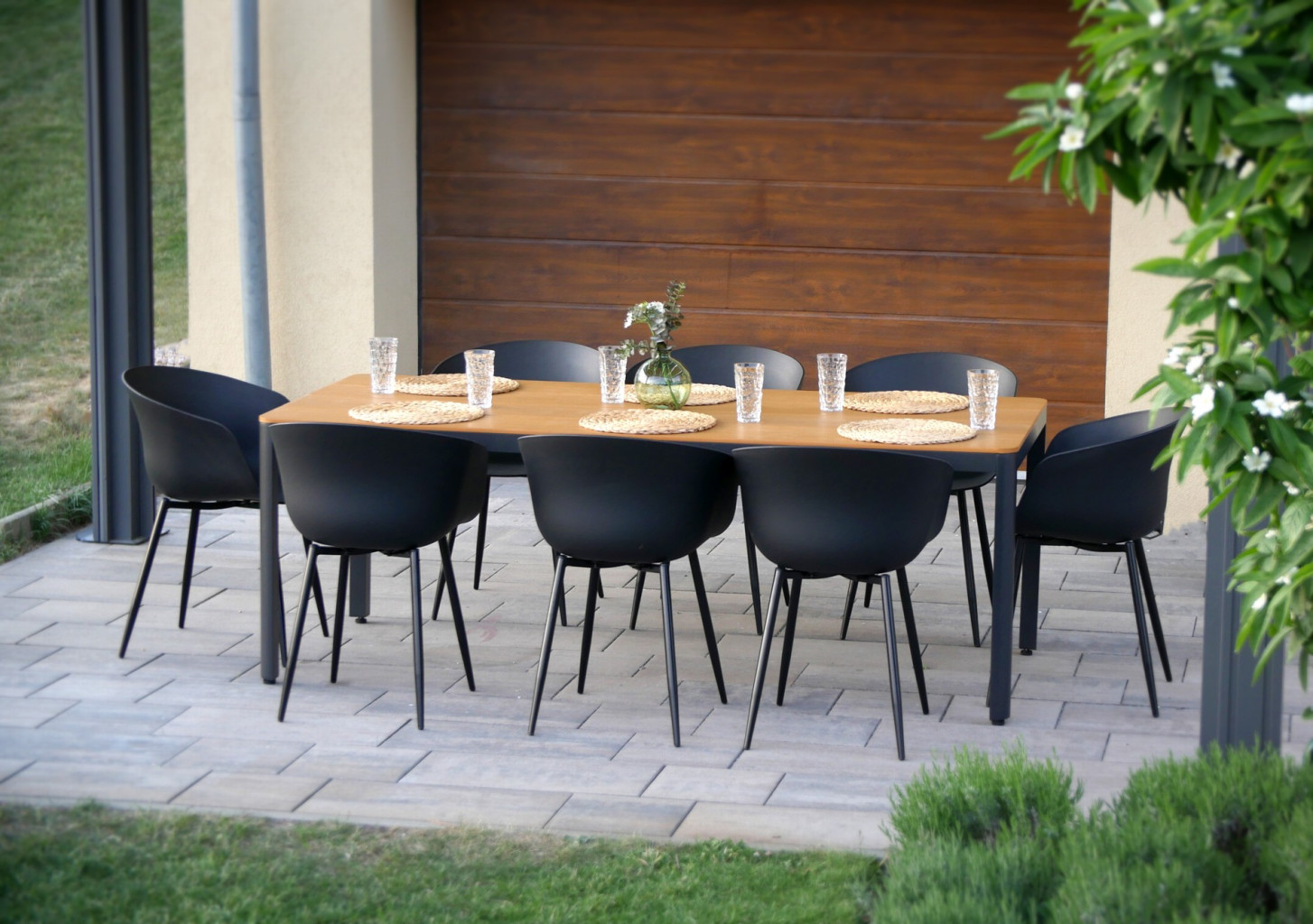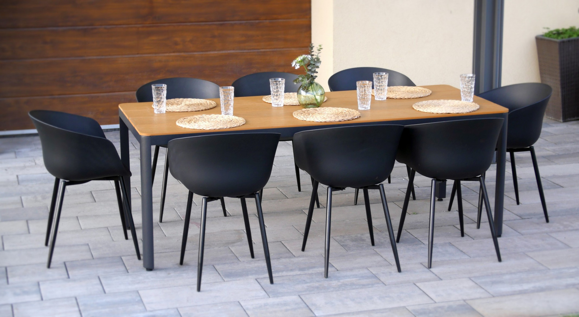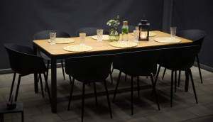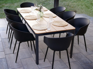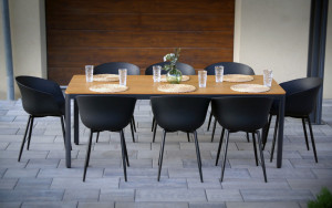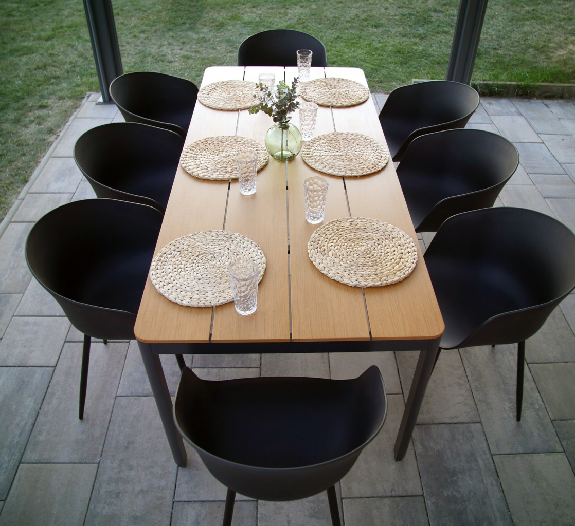Stůl MILANO a židle RIKKE tvoří dohromady moderní zahradní jídelní sestavu, ideální pro zákazníky, kteří kromě funkčnosti kladou důraz i na vzhled a design nábytku.
