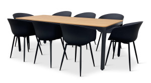 Jídelní stůl doplňují moderní zahradní židle RIKKE s područkou v černé barvě vhodné pro použití venku na zahradě. Sedák a opěrku tvoří plastová designová skořepina z polypropylenu na 4 pevných nožkách z oceli. Židle odolává povětrnostním vlivům a najde tak své využití v interiéru i exteriéru. Použité lehké a moderní materiály nevyžadují téměř žádnou údržbu. Lehkou židli RIKKE navíc snadno přenesete.