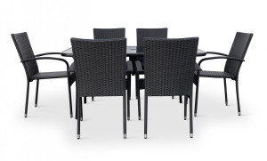 Jídelní stůl doplňují zahradní židle s ocelovou konstrukcí vypletenou umělým ratanem, které se hodí prakticky kamkoliv. Umělý ratan představuje velmi odolný materiál, který dobře snáší jakékoliv povětrnostní podmínky. Na slunci se nevyšisuje a po dlouhou dobu si uchovává svůj vzhled. Pro delší životnost byla ocelová konstrukce židle ošetřena proti rzi. Stohovatelné, téměř bezúdržbové židle s vyztuženým sedákem, který unese těžší váhy i po delší dobu. V sestavě dodáváme demontovatelnou verzi velmi oblíbené zahradní židle Paris.