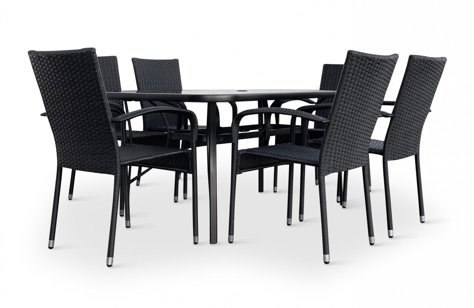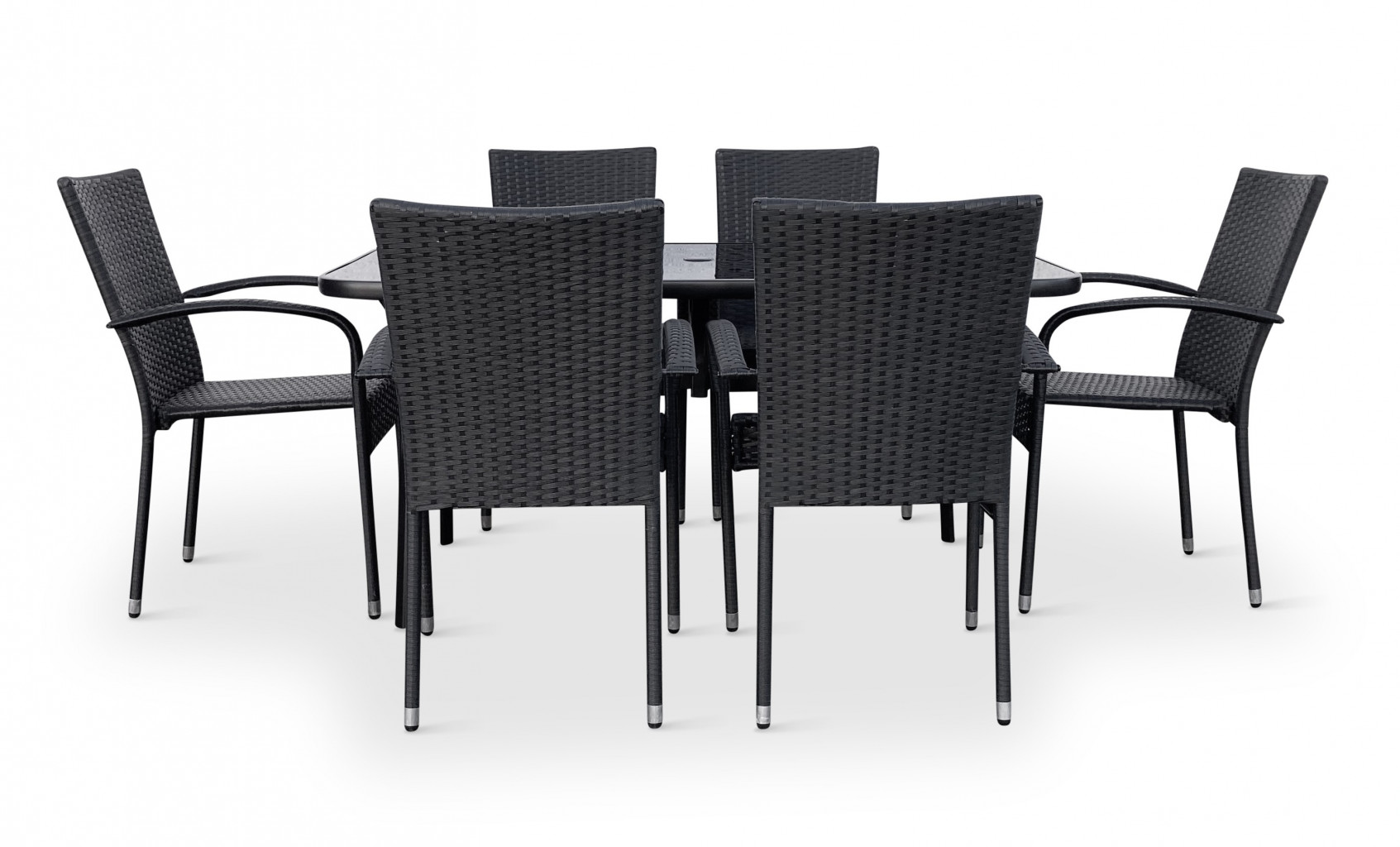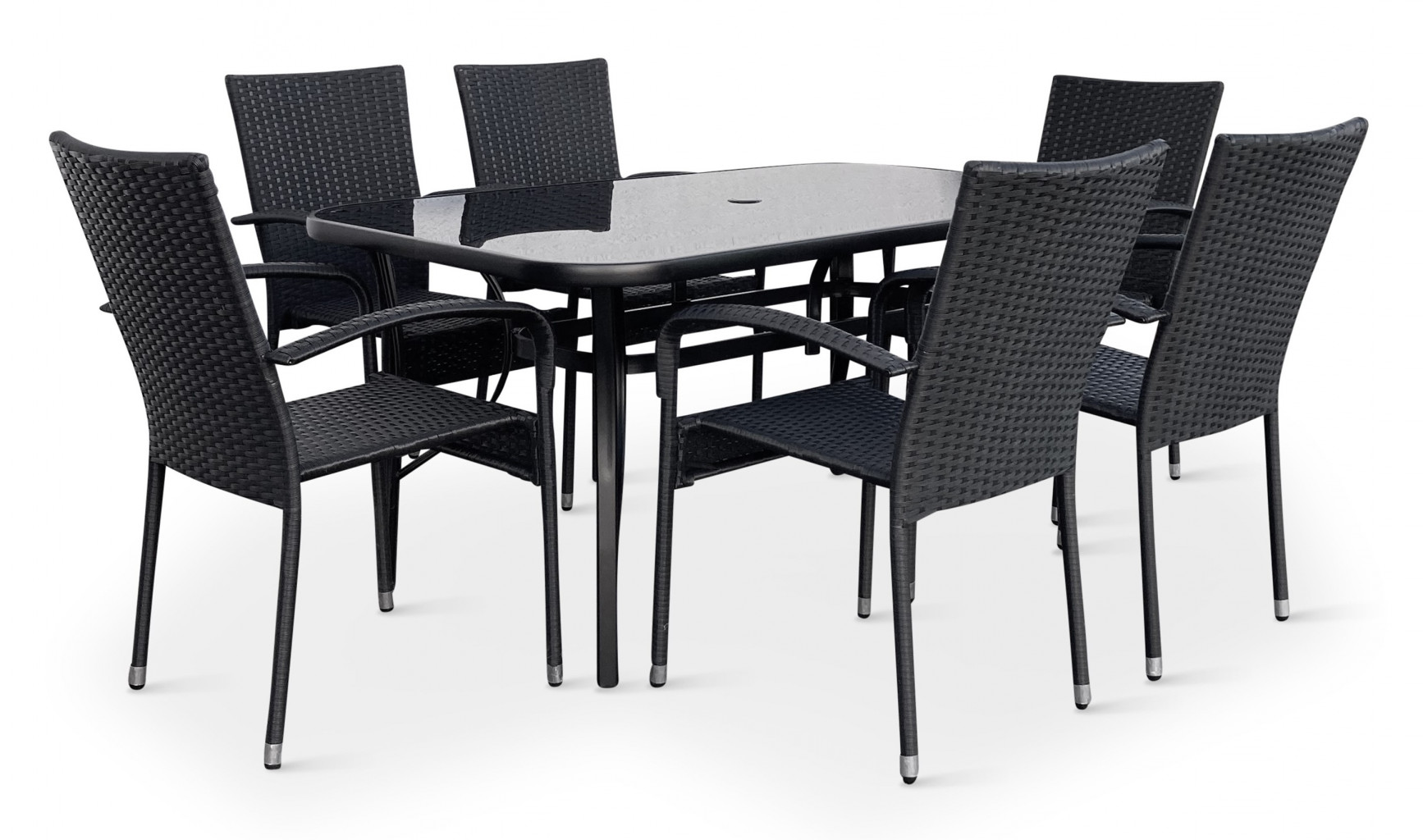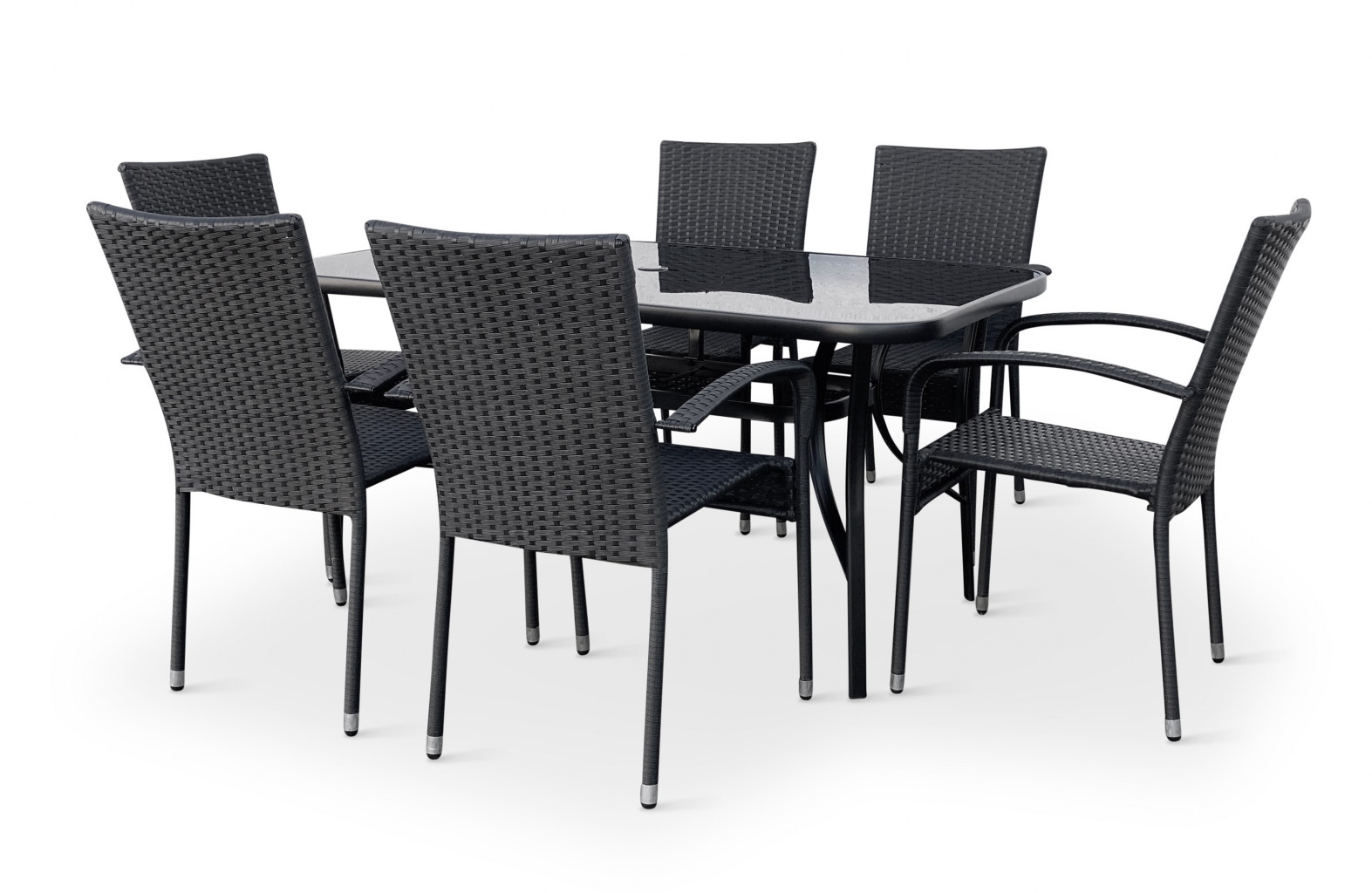 Dotaz na produkt Na splátky ještě dnesPraktická zahradní jídelní sestava z kovu pro 6 osob. Sestavu tvoří a 6x Zahradní židle PARIS ratanová KD.