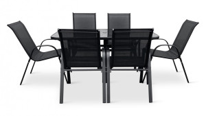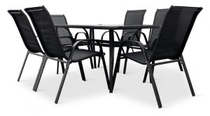 Jídelní stůl doplňují odolné stohovatelné židle s ocelovou konstrukcí a vzdušnou textilií. Vzdušná textilie, ze které je vyroben sedák, je ideální na léto a díky inteligentnímu tvarování velice pohodlná. Židle lze jednoduše naskládat na sebe a nezaberou vám mnoho místa při uložení. Vhodná pro nekomerční použití. Pro delší životnost neskladovat židle ve vlhkých prostorách a nenechávat na dešti.