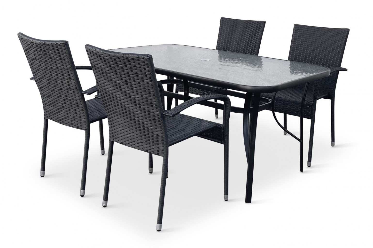 Dotaz na produkt Na splátky ještě dnesPraktická zahradní jídelní sestava z kovu pro 4 osoby. Sestavu tvoří a 4x Zahradní židle PARIS ratanová KD.