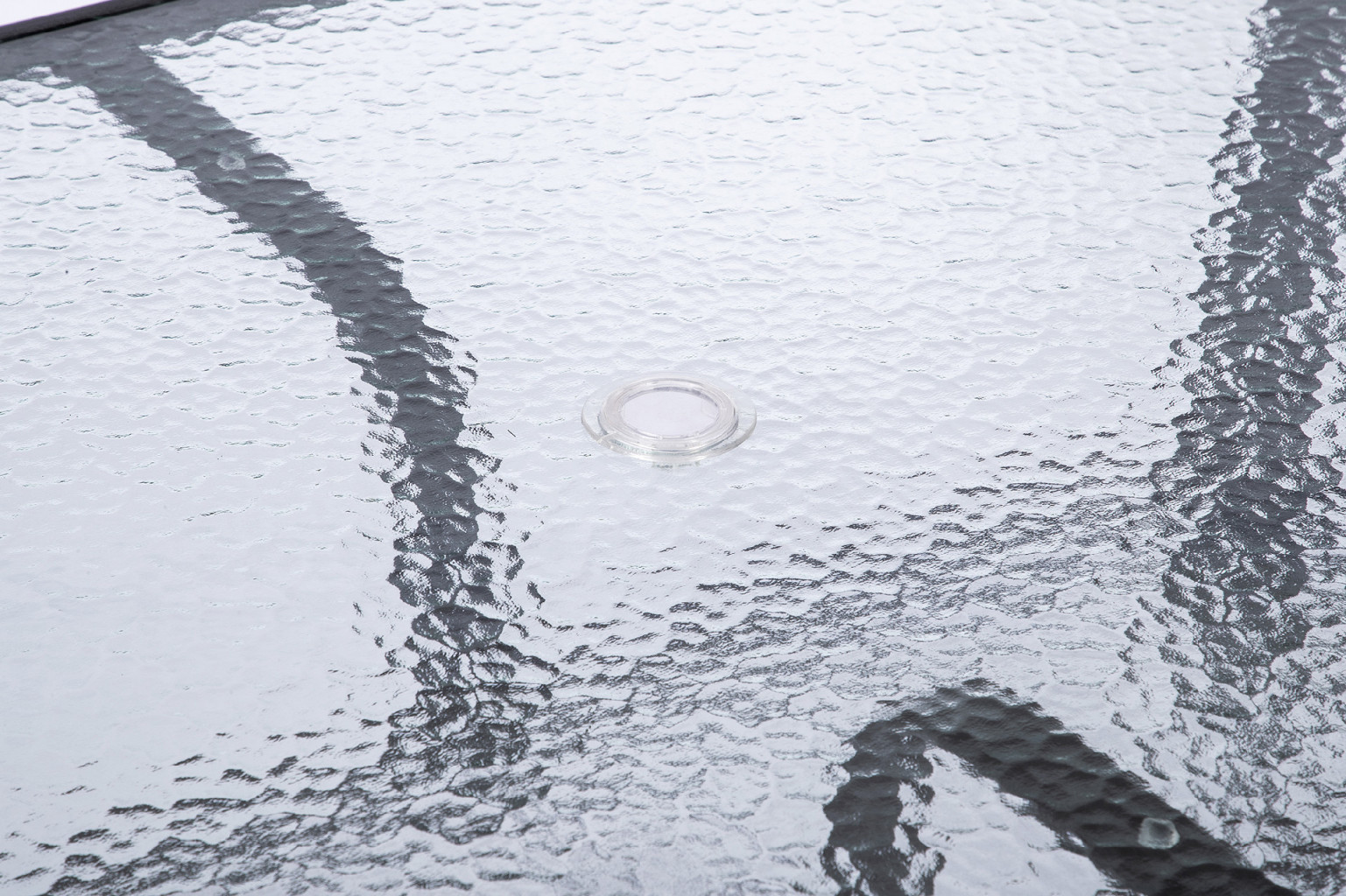 Sestava zahrnuje stabilní stůl s kovovou konstrukcí z oceli a skleněnou transparentní deskou. Deska stolu vyrobená z tvrzeného skla disponuje otvorem pro slunečník o průměru 4,5 cm. Stůl dodáváme včetně plastové záslepky pro případ, kdy otvor pro slunečník nebudete využívat. Kovové části stolu byly ošetřeny proti rzi. Praktický stůl z téměř bezúdržbových omyvatelných materiálů, který svým jednoduchým univerzálním designem zapadne do všech venkovních prostor.