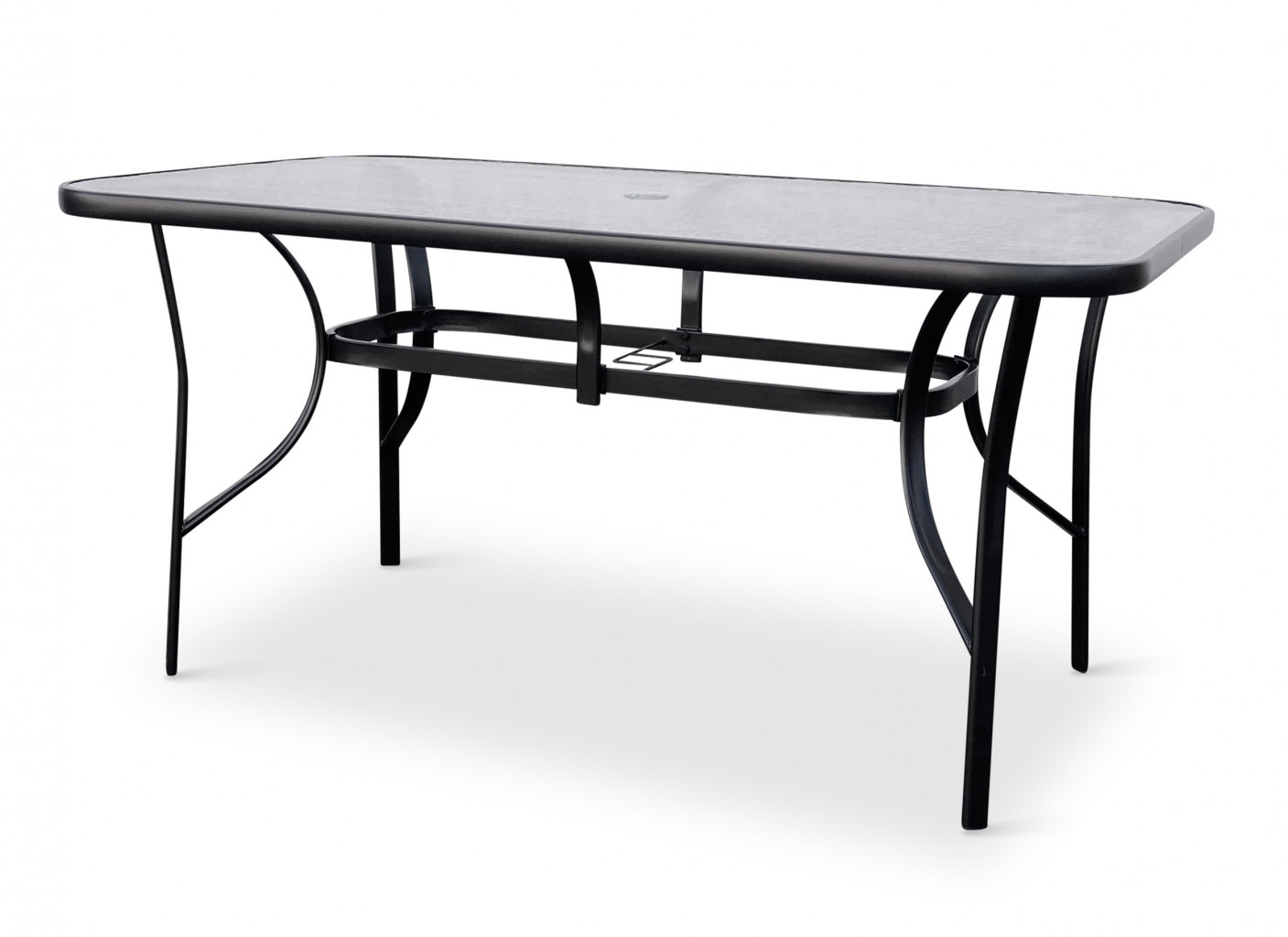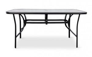 Sestava zahrnuje stabilní stůl s kovovou konstrukcí z oceli a skleněnou transparentní deskou. Deska stolu vyrobená z tvrzeného skla disponuje otvorem pro slunečník o průměru 4,5 cm. Stůl dodáváme včetně plastové záslepky pro případ, kdy otvor pro slunečník nebudete využívat. Kovové části stolu byly ošetřeny proti rzi. Praktický stůl z téměř bezúdržbových omyvatelných materiálů, který svým jednoduchým univerzálním designem zapadne do všech venkovních prostor.