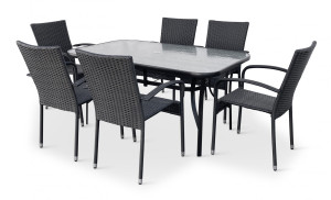 Dotaz na produkt Na splátky ještě dnesPraktická zahradní jídelní sestava z kovu pro 6 osob. Sestavu tvoří a 6x Zahradní židle PARIS ratanová KD.