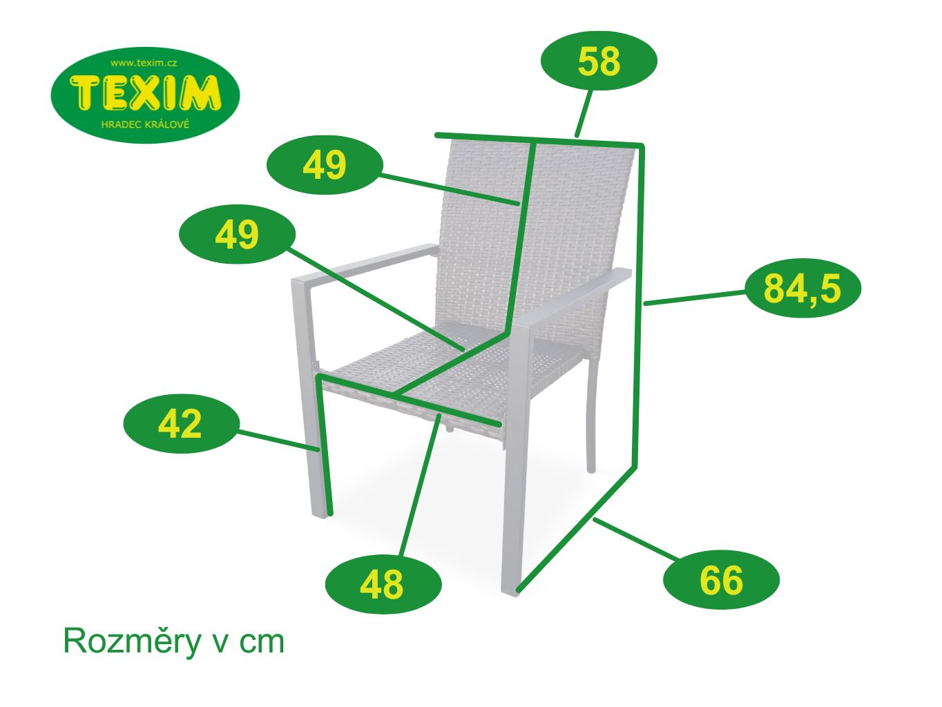 Výrobek není vhodný na komerční využití. Pro delší životnost neskladovat židle ve vlhkých prostorách a nenechávat na dešti.