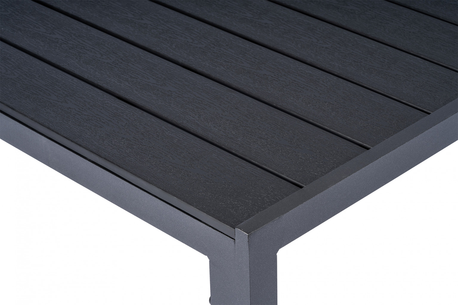 Sestava zahrnuje krásný a lehký stůl vyrobený z materiálů, které nevyžadují zvláštní údržbu. Konstrukce z hliníku ošetřeného proti rzi, deska stolu z artwoodu a adaptéry u nohou pro větší stabilitu. Umělé dřevo artwood v černé barvě věrně imituje strukturu a vzhled dřeva. Ani po několika sezónách neztratí svůj původní vzhled a stabilitu. Klasické tvary a černé provedení stolu.