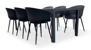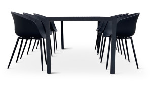 Jídelní stůl doplňují moderní zahradní židle RIKKE s područkou v černé barvě vhodné pro použití venku na zahradě. Sedák a opěrku tvoří plastová designová skořepina z polypropylenu na 4 pevných nožkách z oceli. Židle odolává povětrnostním vlivům a najde tak své využití v interiéru i exteriéru. Použité lehké a moderní materiály nevyžadují téměř žádnou údržbu. Lehkou židli RIKKE navíc snadno přenesete.