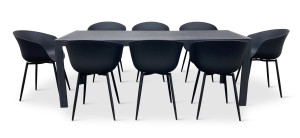 Jídelní stůl doplňují moderní zahradní židle RIKKE s područkou v černé barvě vhodné pro použití venku na zahradě. Sedák a opěrku tvoří plastová designová skořepina z polypropylenu na 4 pevných nožkách z oceli. Židle odolává povětrnostním vlivům a najde tak své využití v interiéru i exteriéru. Použité lehké a moderní materiály nevyžadují téměř žádnou údržbu. Lehkou židli RIKKE navíc snadno přenesete.