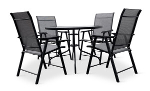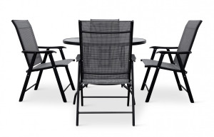 Dotaz na produkt Na splátky ještě dnesMalá zahradní sestava se stolem s kulatou deskou pro 4 osoby. Sestavu tvoří Zahradní kovový stůl CAPRI 100cm a 4x Zahradní židle SOLANO skládací.