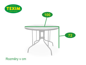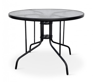 Sestava zahrnuje stabilní stůl s kovovou konstrukcí z oceli a skleněnou transparentní deskou. Kulatá deska stolu vyrobená z tvrzeného skla poskytne dostatek místa pro 4 osoby. Kovové části stolu byly ošetřeny proti rzi. Stůl je vyroben z téměř bezúdržbových omyvatelných materiálů, které odolávají povětrnostním vlivům. Praktický stůl s kulatou deskou o průměru 100 cm, který je ideální pro malé venkovní prostory, kde jste omezeni místem.