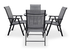 Jídelní stůl doplňují skládací židle s ocelovou konstrukcí a vzdušnou textilií, která je ideální na léto a velice pohodlná. Židle lze jednoduše složit do minimálních úložných rozměrů. Vaše pohodlí zajistí opěrka zad o výšce 61 cm a komfortní područky s plastu. Lehkou židli SOLANO snadno přenesete. Židle nevyžaduje montáž. Po vytažení z krabice jí můžete rovnou používat.