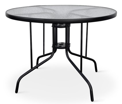 Sestava zahrnuje stabilní stůl s kovovou konstrukcí z oceli a skleněnou transparentní deskou. Kulatá deska stolu vyrobená z tvrzeného skla poskytne dostatek místa pro 4 osoby. Kovové části stolu byly ošetřeny proti rzi. Stůl je vyroben z téměř bezúdržbových omyvatelných materiálů, které odolávají povětrnostním vlivům. Praktický stůl s kulatou deskou o průměru 100 cm, který je ideální pro malé venkovní prostory, kde jste omezeni místem.