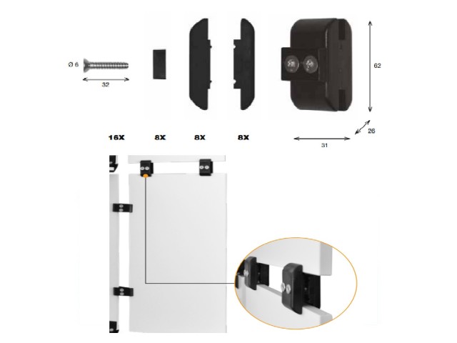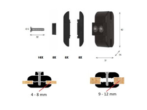 Sada pro spojování dřevěných, skleněných nebo akrylátových desek, jednoduchá a rychlá montáž, možné sestavovat police vertikálně i horizontálně, pokud se rozhodnete můžete sestavu kdykoliv jednoduše změnit, moderní design, vhodné kamkoliv v domácnosti od ložnice až po dílnu, barevné a tvarové variace záleží jen na vás