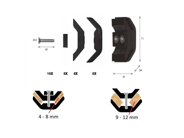 Spojka 90stupňů* rozměr 31x71mm* šroub 6x32mm* pro upevnění desek 4-12mm