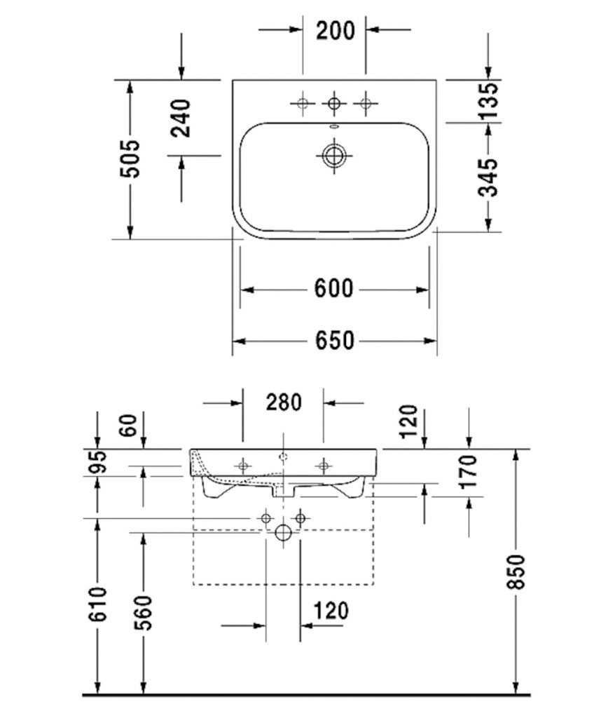Nábytkové umyvadlo Duravit Happy D.2 65x50,5 cm otvor pro baterii uprostřed 2318650000