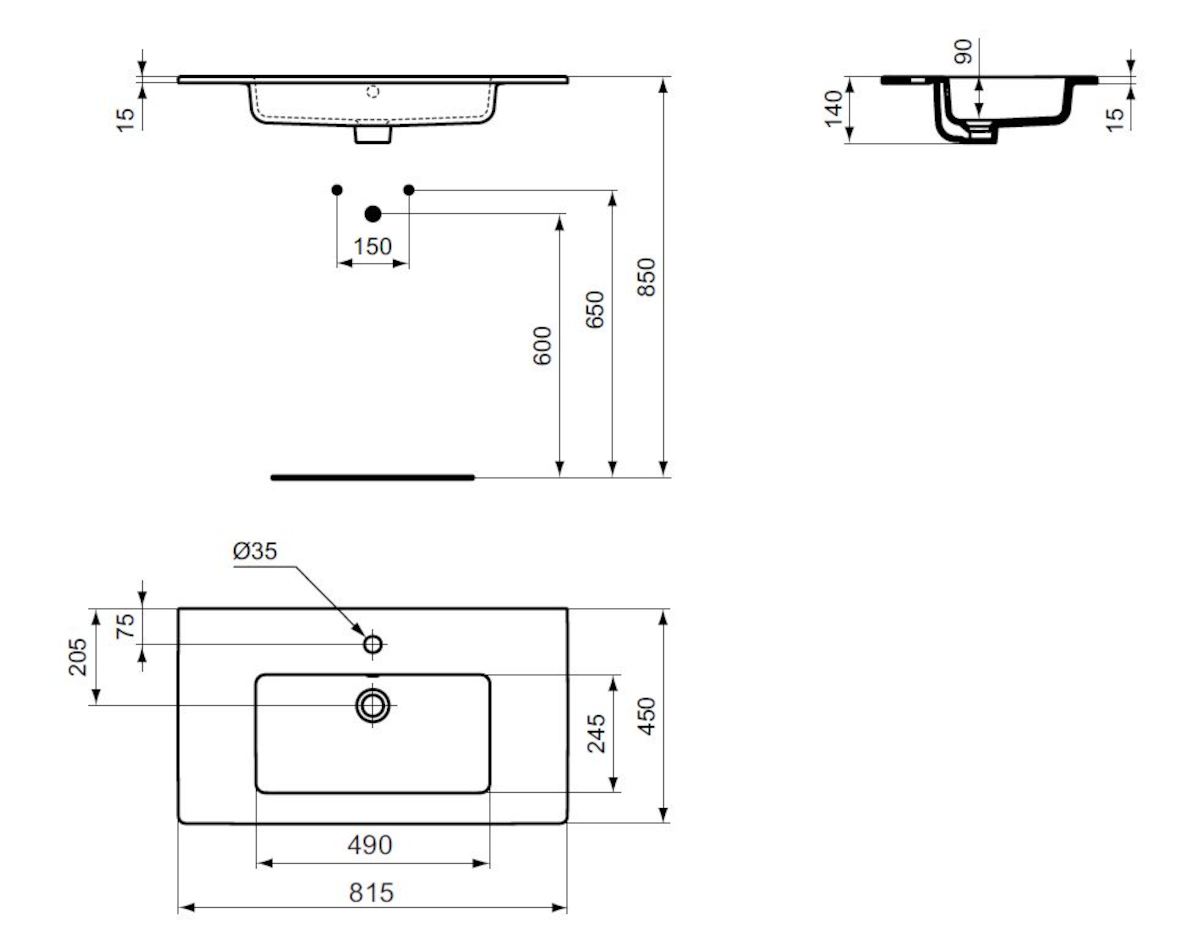 Nábytkové umyvadlo Ideal Standard Tempo 81x45,5 cm otvor pro baterii uprostřed E066901