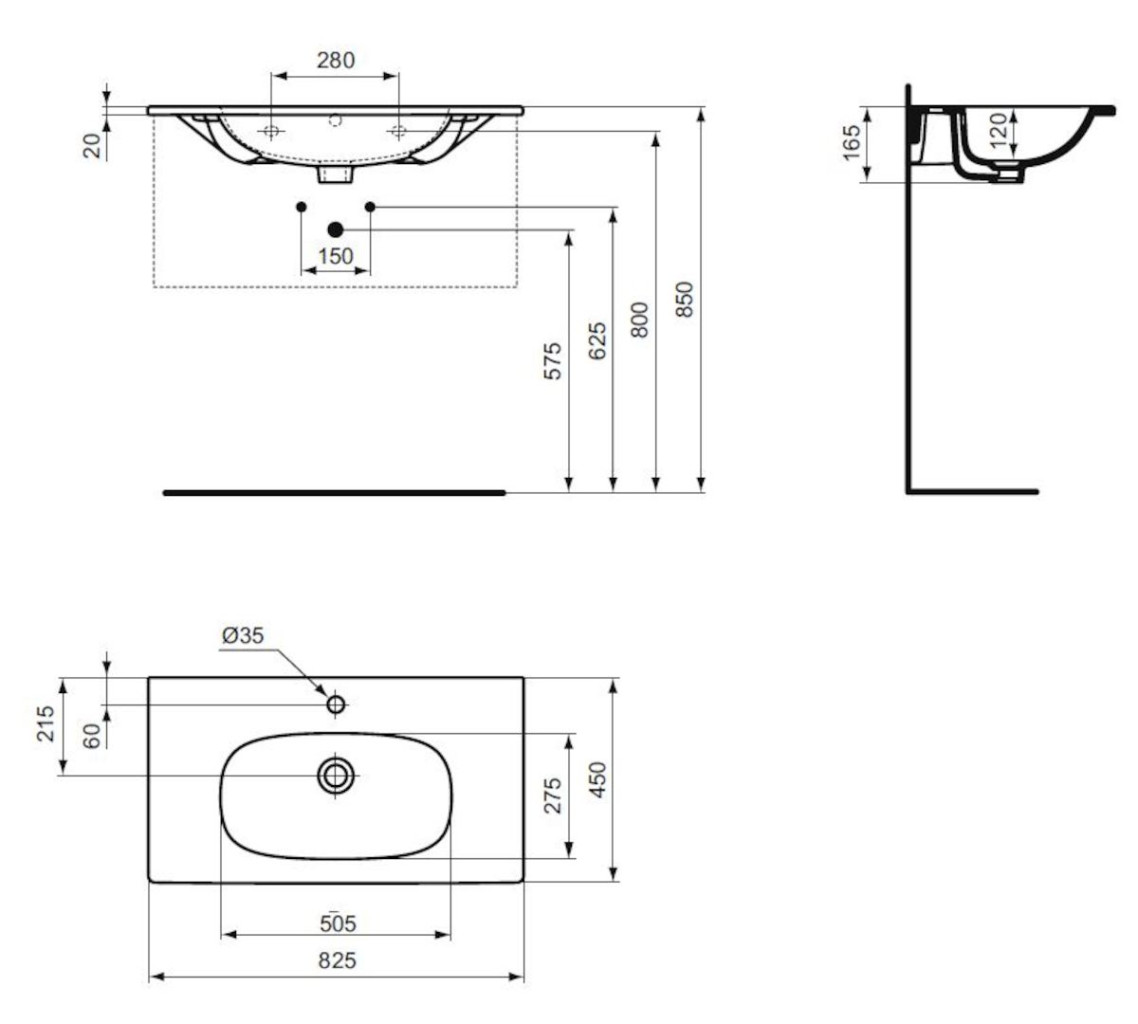 Nábytkové umyvadlo Ideal Standard Tesi 82,5x45 cm otvor pro baterii uprostřed T350901