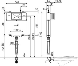 Konstrukce polystyrenové izolace nádržky zjednodušuje zazdívání, zabraňuje rosení na povrchu nádržky a tlumí prostup vibrací z nádržky do stavební konstrukce; Duální splachování nezávisle nastavitelné s hygienickou rezervou; Kompatibilní se všemi ovládacími tlačítky Alcaplast s výjimkou senzorových tlačítek; Nádržka je vyrobena z jednoho kusu, čímž je zaručena 100% nepropustnost; Přívod vody zezadu/shora uprostřed; Servisní práce bez použití nářadí; Kryt servisního otvoru zjednodušuje montáž a brání pronikání vlhkosti a nečistot; Montážní výška 1070 mm; Montážní hloubka nastavitelná v rozmezí 20–60 mm; Stavební hloubka 84 mm
