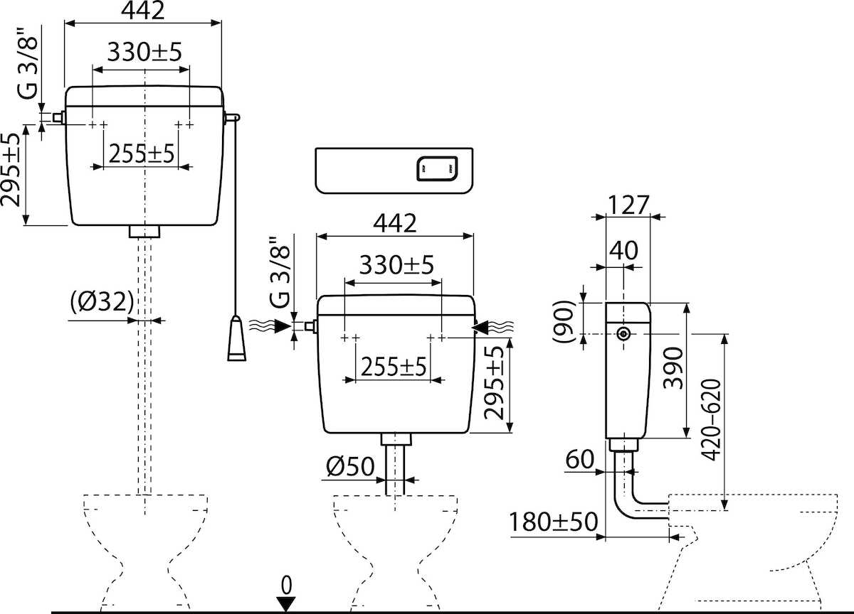 Nádržka izolovaná proti rosení; Přívod vody zleva/zprava; Univerzální závěsy se svou roztečí a tvarem shodují s dosud používanými nádržkami; Objem 8 l s velkou variabilitou nastavení vypouštění objemu vody; Splachování START/STOP; Úsporné nastavitelné spláchnutí; Konstrukční řešení zaručuje komfort ovládání splachování i pro děti a handicapované osoby; Materiál: ABS