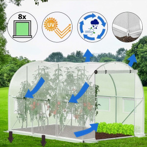 Díky větracím síťovaným oknům je zajištěna dobrá cirkulace vzduchu, což pomáhá regulovat vlhkost uvnitř fóliovníku. Široký vchod s roletkou a zipem usnadňuje přístup a manipulaci s rostlinami. Obvodové pásy do země zvyšují stabilitu a chrání fóliovník před větrem. Tato fólie je skvělým řešením pro všechny zahrádkáře, kteří chtějí svůj fóliovník rychle a efektivně obnovit a pokračovat v pěstování rostlin bez starostí.