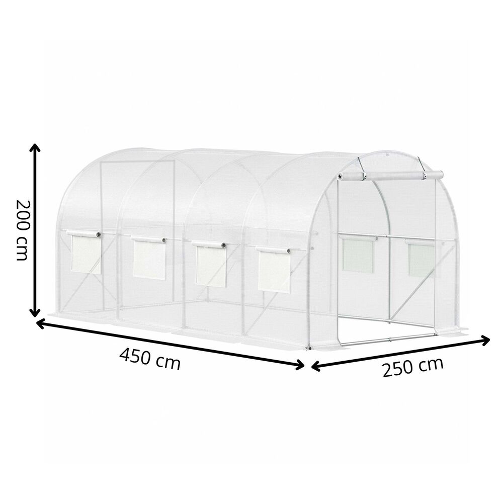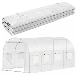 Vysoce pevná a odolná fólie s UV ochranou pro foliovníky rozměru 4,5x2,5x2 m.Poskytuje spolehlivou ochranu rostlin před nepříznivými vlivy počasí. Větrací síťovaná okna zajišťují optimální cirkulaci vzduchu, zatímco široký vchod s roletkou a zipem umožňuje snadný přístup. Obvodové pásy do země zlepšují stabilitu a chrání fóliovník před větrem. Ideální řešení pro obnovu dosloužilé fólie.