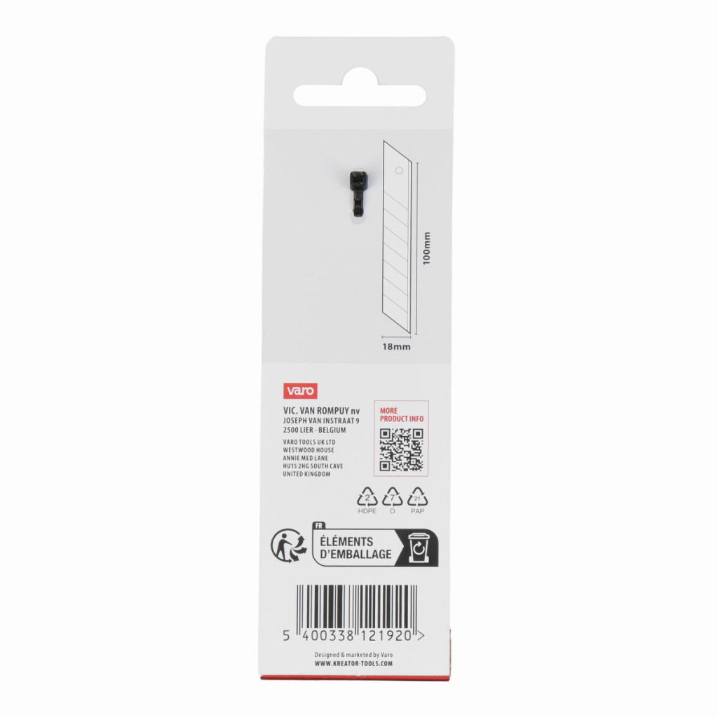 Dotaz na produktToto je 10-dílná sada odlamovacích čepelí KRTH00303 od Kreator. Rovné náhradní čepele mají šířku 18 mm a pasují na většinu odlamovacích řezaček stejné šířky.