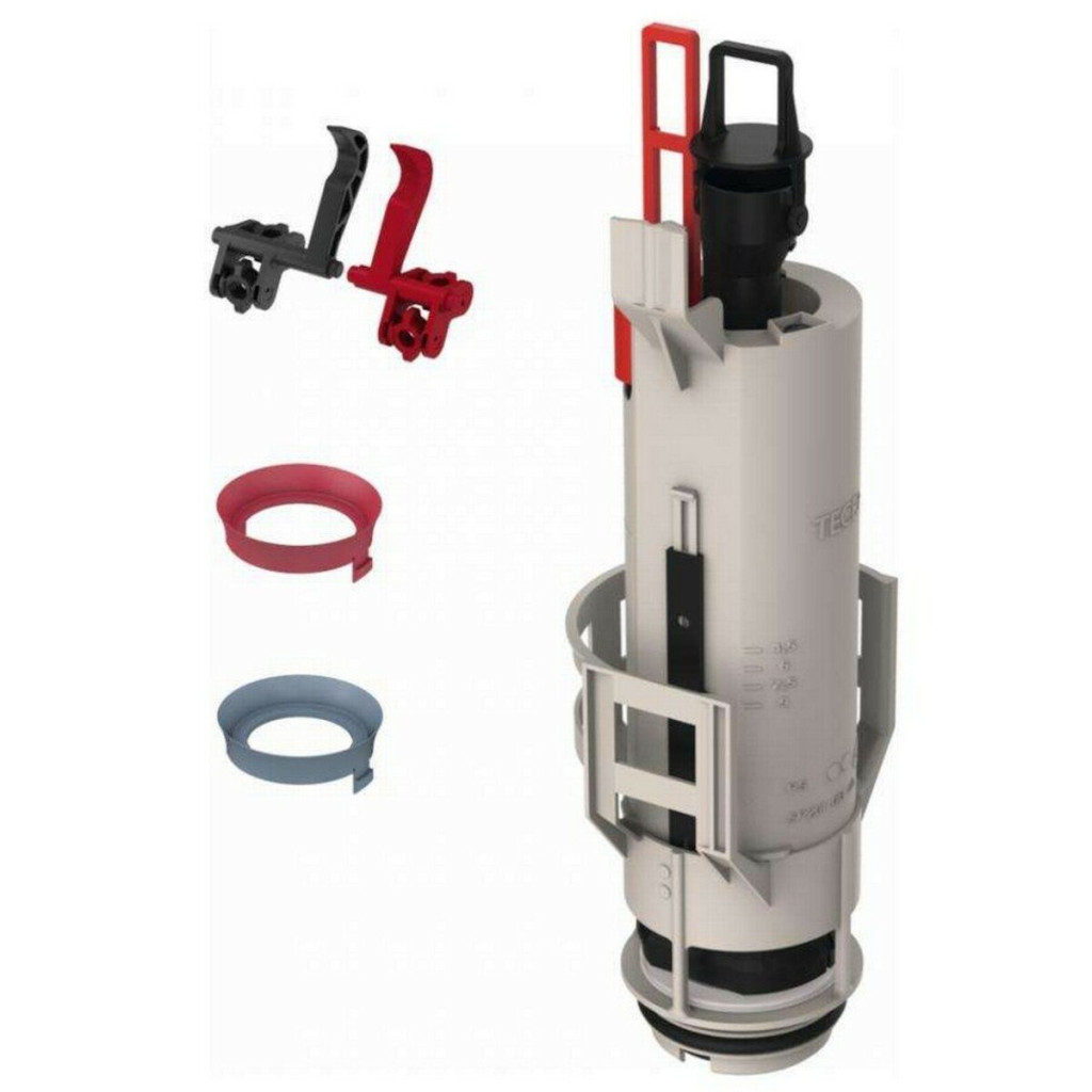 Vypouštěcí ventil A 2 do standardní nádržky TECE s instalační hloubkou 13 cm včetně sedla ventilu, sady redukčních kroužků a splachování.