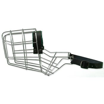 Dotaz na produktKovový náhubek s koženými řemínky na zapínání.