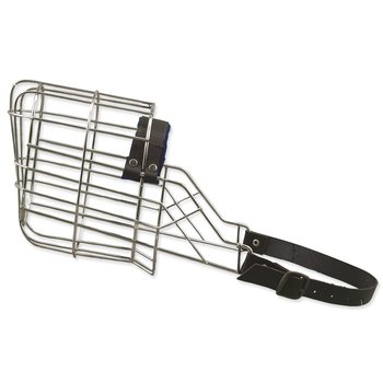 Dotaz na produktKovový náhubek s koženými řemínky na zapínání.