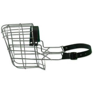 Dotaz na produktKovový náhubek s koženými řemínky na zapínání.