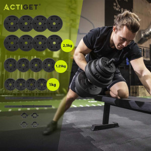 Sada Nakládací činky 2x15 kg ACTIGET ACT0042 je ideální volbou pro domácí silový i kondiční trénink. Díky nakládacím jednoručním činkám lze snadno přizpůsobit zátěž aktuální úrovni a postupně ji navyšovat. Sada je vhodná pro posilování paží, ramen, hrudníku i zad a umožňuje širokou škálu cviků.