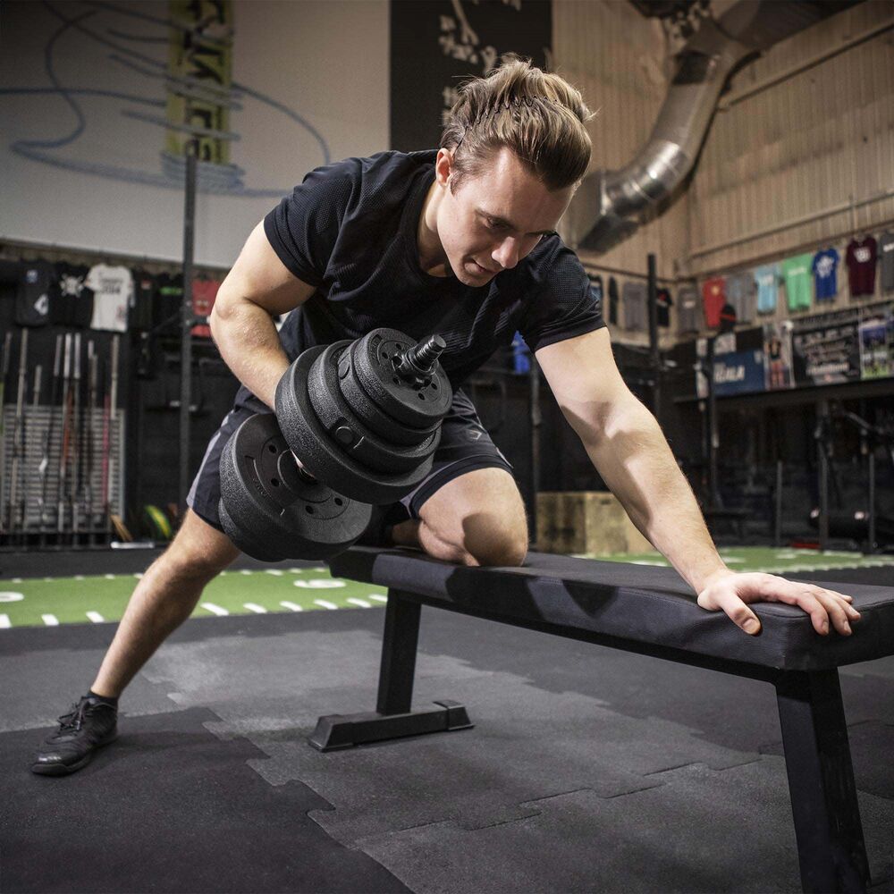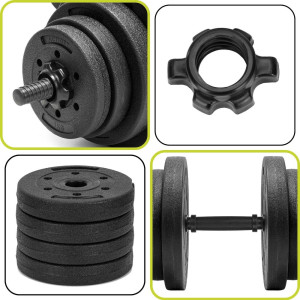 Nakládací jednoruční činky vhodné pro domácí i kondiční trénink. Protiskluzová rukojeť zajišťuje jistý úchop při cvičení. Pestrá skladba 16 kotoučů umožňuje snadné nastavení zátěže podle potřeby. Součástí jsou kotouče o hmotnosti 1 kg, 1,25 kg a 2,5 kg, ideální pro postupné zvyšování zátěže a všestranné posilování celého těla. Celková hmotnost 30 kg.