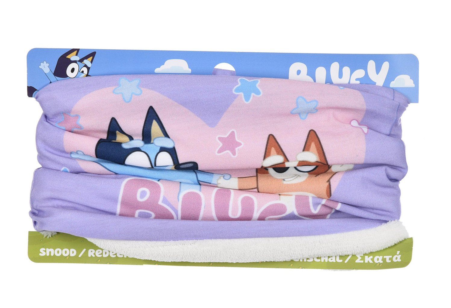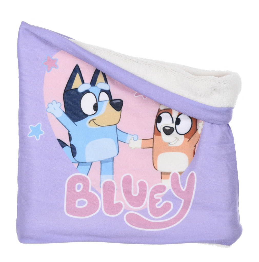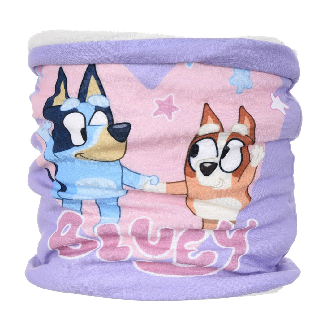 Dětský nákrčník s motivem populárního seriálu Bluey. Slouží jako ochrana krku a obličeje před chladem a větrem, vhodný pro děti při venkovních aktivitách. Universální velikost, cca 2-8 let. Rozměry: 50 x 22 cm. Materiál: 100% polyester, uvnitř korálový flís, zvenku jersey. Barva: fialová. Výrobce: Sun City. Sun City 8/10 Avenue du Stade de France 93216 Saint-Denis E-mail: service-client@sun-city.fr