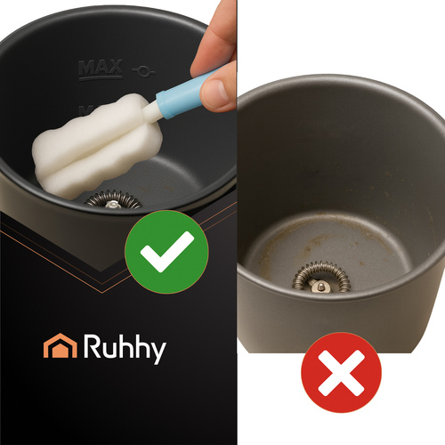 - bezpečnost a pohodlí - protiskluzové nožičky zajišťují stabilitu během provozu a ukazatele min/max usnadňují nalévání správného množství mléka