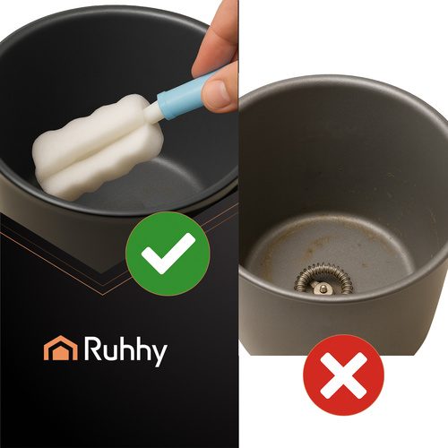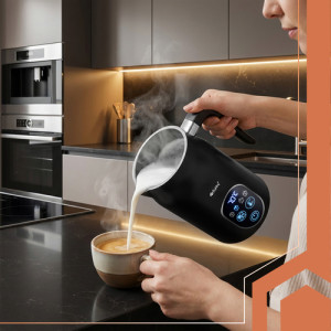 - Stylový a kompaktní design Ruhhy – matný povrch a ergonomický tvar dodávají napěňovači skvělý vzhled v moderní kuchyni.