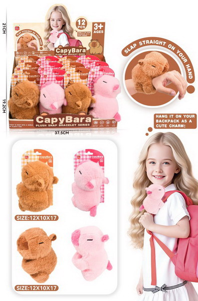 Dotaz na produktNáramek plyšový kapybara. Rozměry 12x10x17 cm. 12 ks display box. 2 varianty - hnědá, růžová.
