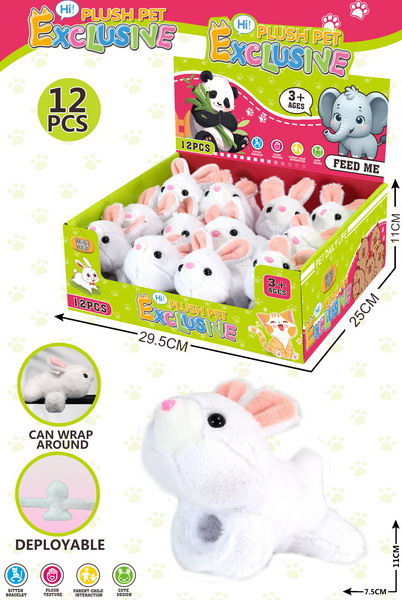 Dotaz na produktNáramek plyšový králík. Rozměry 11x7,5 cm. 12 ks display box.