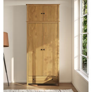 Dotaz na produkt Na splátky ještě dnesmateriál masiv borovice voskovaná v medovém odstínu kovové úchytky v barevném provedení černěná mosaz nástavec pro skříň 8088V